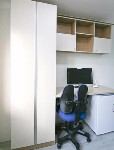 •LED TV モニター, ベッド(収納スペース有), 机, 椅子, 冷蔵庫