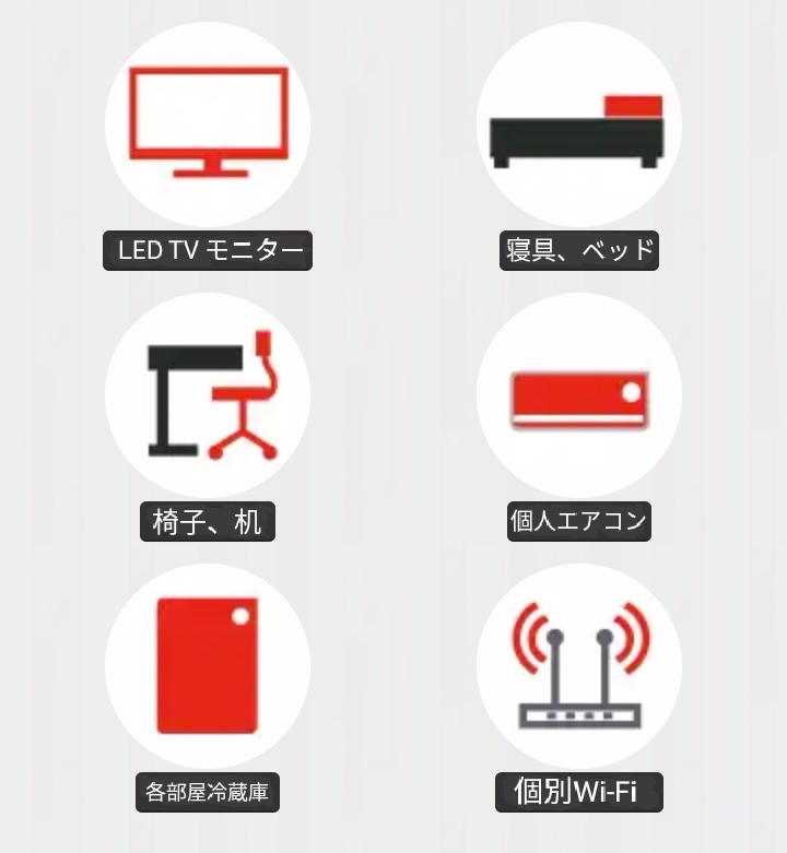 •各部屋トイレ,シャワー完備、個別エアコン